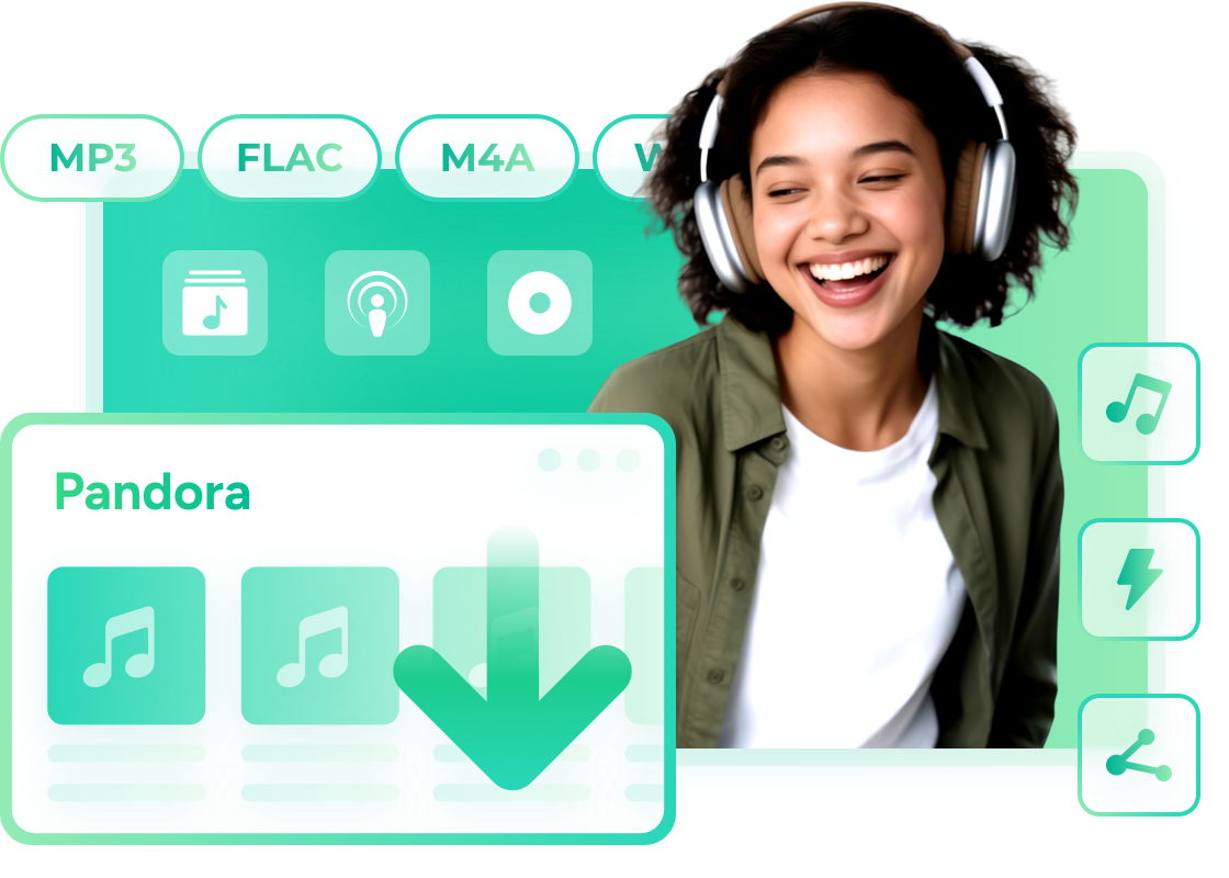 將 Pandora 音樂下載為 MP3、WAV、FLAC、OPUS、M4A 格式,最高支援 320 kbps 音質
